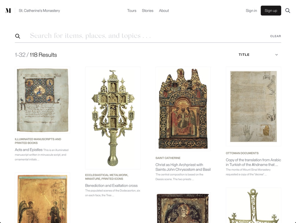 Saint Catherine's Monastery and Museum: https://stcatherines.mused.org/